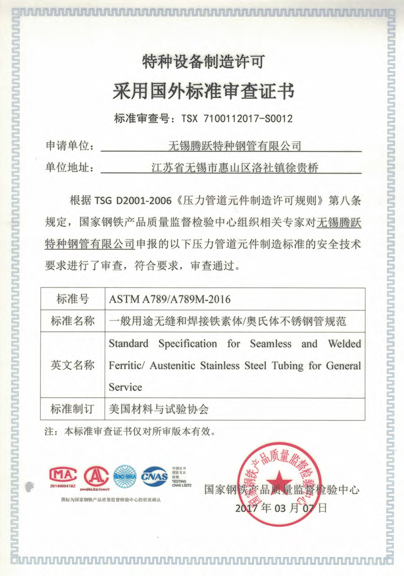 無錫騰躍特種鋼管有限公司創建于1987年,地處江蘇省無錫市惠山區洛社鎮。公司占地面積18萬平方米,現有員工350人,是一家專業生產不銹鋼無縫管的企業,年產能5萬噸。主要規格:外徑6~630mm、壁厚0.7~40mm。主要材質:奧氏體、奧氏體-鐵素體、鎳基合金等。 公司是中石化、中石油、中海油、核電的供應商網絡成員單位,是江蘇省AAA級信用單位。公司先后通過ISO9001質量管理體...